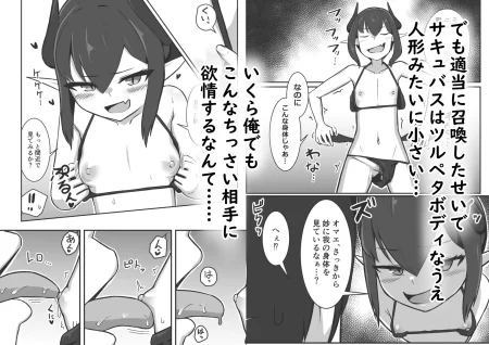 胸もお尻もしぼんだツルペタボディで召喚されてしまうサキュバス。